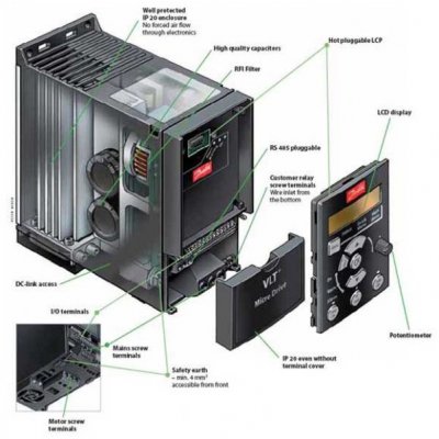 El VLT® Micro Drive FC51 es un convertidor de frecuencia para aplicaciones básicas capaz de conectarse a motores de CA hasta 22,0 kW. Es un convertidor de frecuencia pequeño de máxima fiabilidad y robustez. Se ajusta perfectamente a cualquier aplicación industrial y aplicaciones HVAC. Está disponible para tensión de alimentación trifásica ó monofásica.