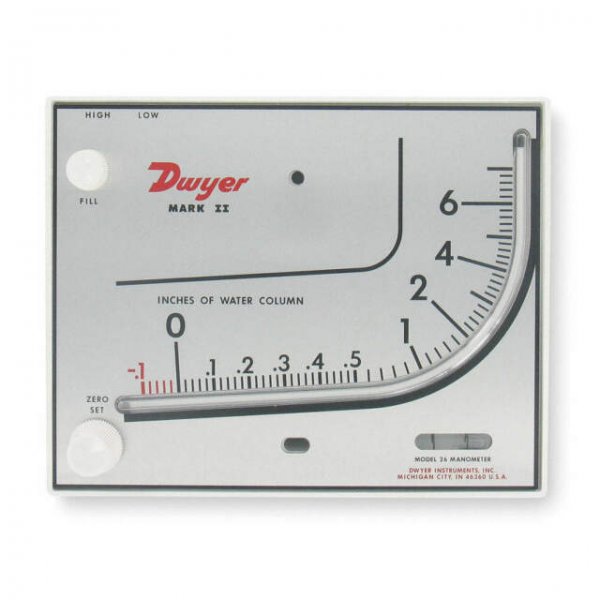 Manómetro de Rama Inclinada Serie MARK II 26 Rango: 0 - 7 inWC.