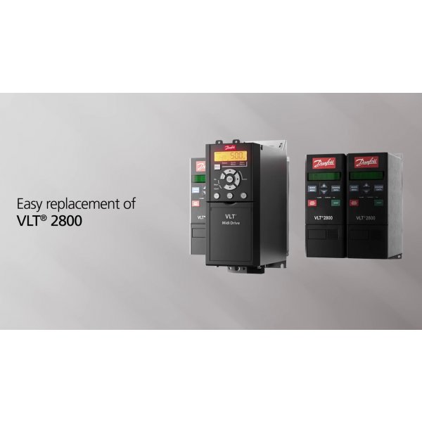 El VLT® Midi Drive ha sido diseñado para ser compatible con el VLT® 2800. Gracias a sus dimensiones exteriores, los terminales, la longitud del cable y el software de configuración, resulta sencillo reacondicionarlo para que se adapte a un panel de variadores de frecuencia preexistente.